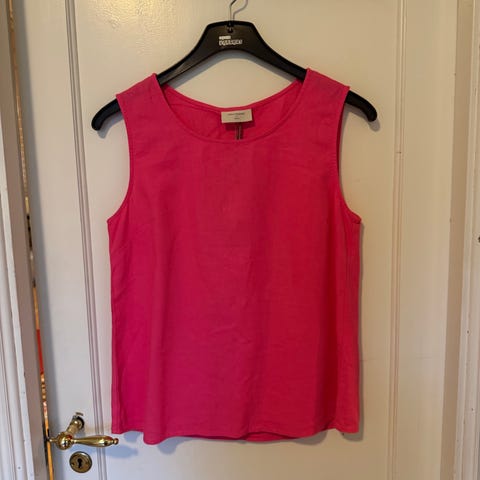 Lekker rød topp i mykt materiale. Toppen er aldri brukt, og er størrelse M. Materiale: 68% modal, 32% polyester. Jeg sender stort sett alltid første virkedag etter mottatt penger for frakt :)