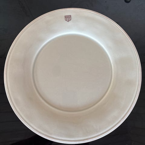 Ubrukt gryteunderlag, serviettholder og glassbrikker i lilla