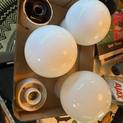 1 stor kuppel som er 24cm.høy og 36cm.i diam.i bunn.Hel og fin. Pris:450,-