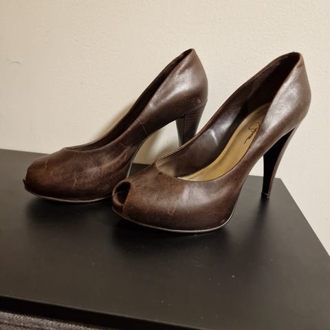 Bruksslitasje, se bilder. Ellers utrolig fine og nydelige sko. Har selv aldri fått brukt de pga feil str som beskrevet over.