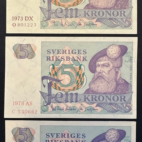 Sverige 3 stk 1 kr 1970, 71 og 73.