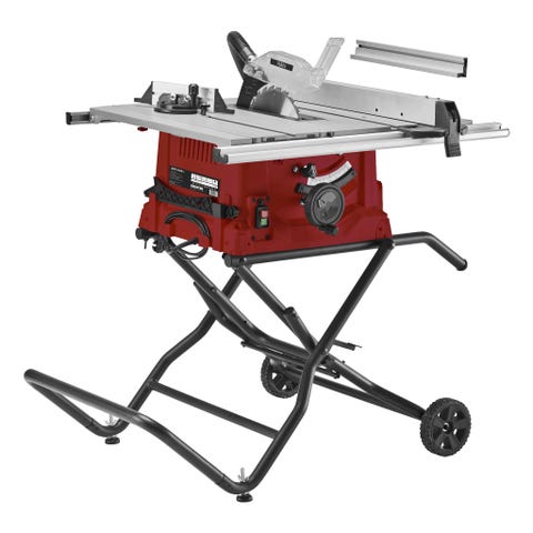 En meget sterk og nøyaktig bordsirkelsag med metallstativ til leie. Stor bordplate med uttrekk. Integrert skyvesleide og høy skjærekapasitet.