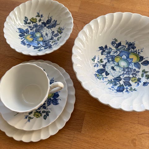 Porsgrunn Porselen med gullkant og blå dekor