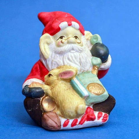 SOLGT. Kr 120. Liten nisse bærer ved. Høyde ca. 10 cm. Laget i porselen.