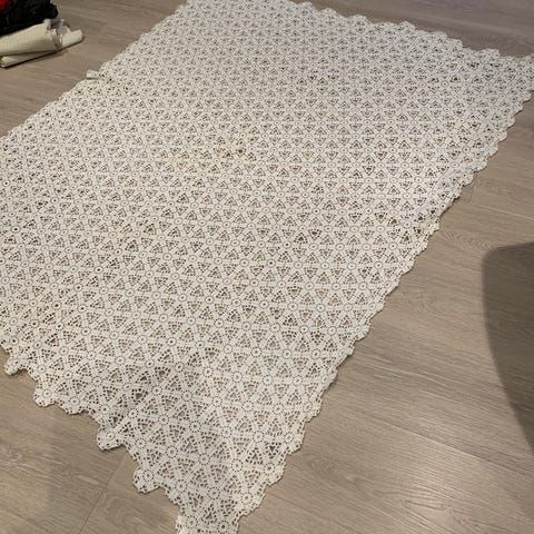 Pent gammelt heklet sengeteppe/duk. Ny pris 350kr
