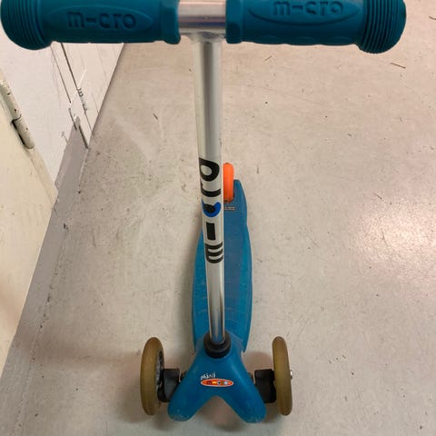Sparkesykkel Micro Maxi selges for 100 kr. Brukt av et barn, i god stand, 4 hjul for god balanse og god bremse på bakhjul. Passer for barn mellom 5 og 10 år, tåler vekt opptil 50 kg. Styret er justerbart i høyden og kan tas av for lagring og transport