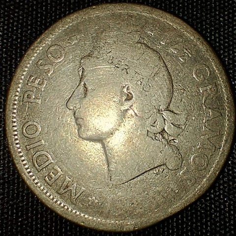 Den dominikanske republikk ½ peso 1951 .900 sølv Philadelphia mint NY PRIS