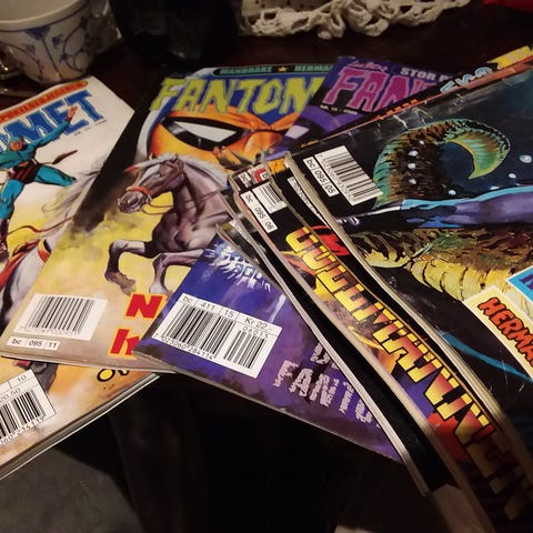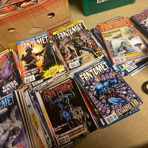 Fantomet blader som er lest mange ganger. Noen har skrammer men alle er hele.