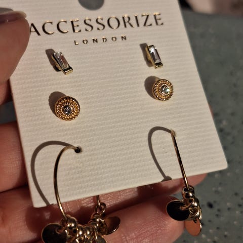 Et stort sett med øredobber eller øreringer. Gullfarget. Noen mangler da jeg har brukt dem, men alle på dette brettet er ubrukt. Perfekt for deg som har mange hull i ørene og vil ha mye å velge mellom. Kan hentes på Gullhella i Asker eller sendes hvis kjøper dekker porto. Selges samlet.
