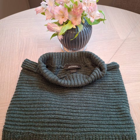 Hel og ok genser. Noen flekker, usikker på om det er mulig å få bort i vask. Selges til prisantydning eller høyeste bud.