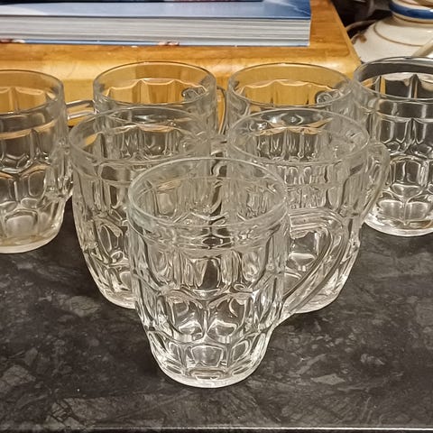 6 stk glass med hjerte. Hank.