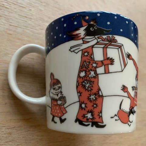 Se våre andre Mummi-samlerobjekter til salgs på FINN. Hvis du leter etter mummikopper i perfekt stand, kan du sjekke tilgjengeligheten direkte fra nettsiden vår: https://www.muumimukitrahaksi.fi/en/product/moomin-mug-winter-forest-2012-label/
