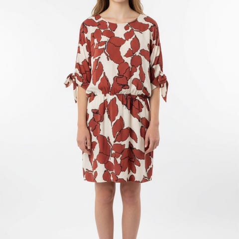 Løs passformet kjole laget av stretchjersey. Modellen har en flatterende V-hals, brede 3/4 ermer.