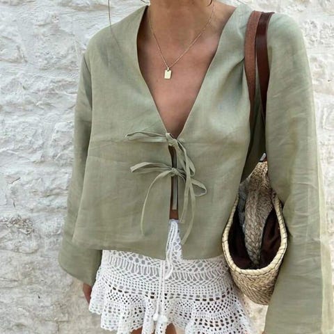 Fin topp, i lett stoff. Veldig søt, med knyting. Fremstår som ny. Kan sendes for 57,-