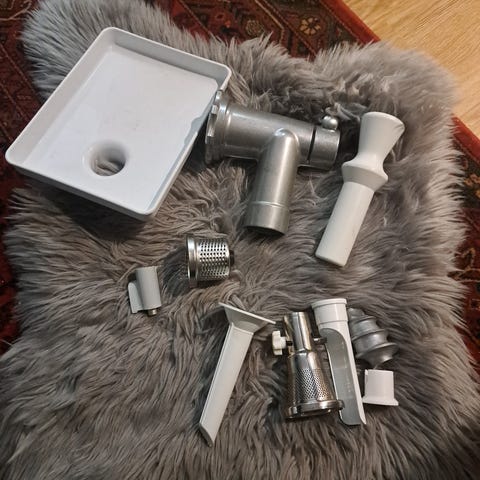 Original kjøttkvern til den Elektrolux Assistent kjøkkenmaskin selges. Pent brukt og i god stand, det kjennes lite slark og den er skarp og god. Er innsmurt med matolje som beskyttelse mot rust, slik produsenten anbefaler.