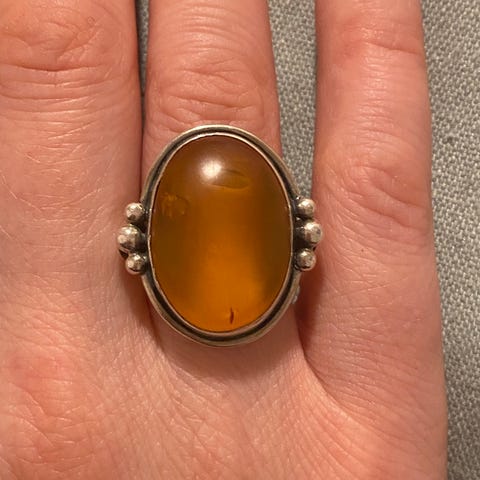 Vintage sølvring 875 med ekte rav.Sølvsmykke.