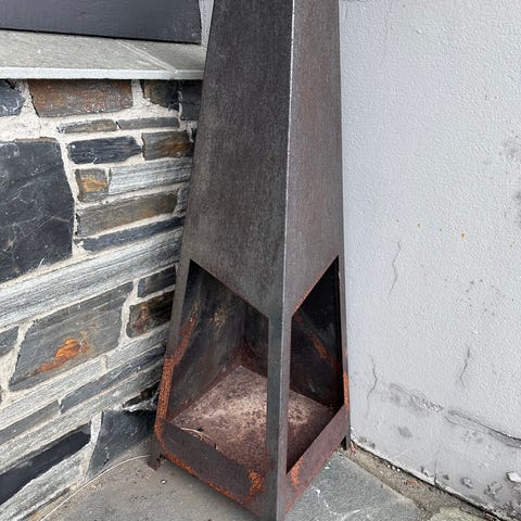 Vi har fått inn for salg en fin peis støtte i stål, mål 3,5*3,5*55 cm.