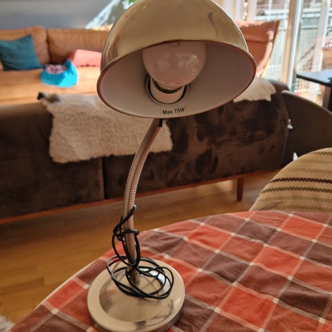 3 fine bordlamper selges.de er hele og fine.den med blå kuppel og bein er litt spesiell.den er av type B9806.er fra IKEA.kom med bud på disse fine lampene.