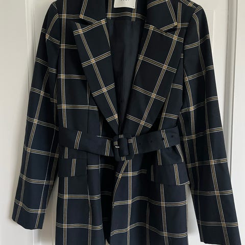 Selger en ubrukt lang blazer/dressjakke fra Just i størrelse S. Den er mørkeblå.