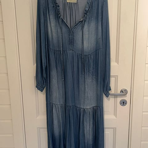 Kjolen er brukt få ganger og fremstår som ny. Str S. Behagelig og romslig model som passer flere størrrelser. Lange ermer og praktiske stikklommer i sidene på kjolen.