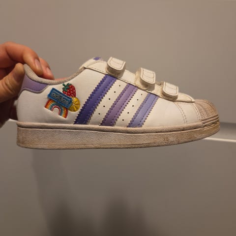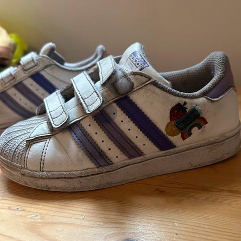 Salger pene og komfortable Adidas sko (myk innesålekr med pene detaljer til barn (unisex modell). Veldig lite og pent brukt i en kort periode.