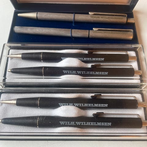 Wilhelmsen Lines rederi keramikkskål pins og fyrstikkeske