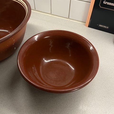 Hel og pen bolle fra Rørstrand. Noen «skjønnhetsfeil», men ikke skjemmende. En ripe i glasuren under (ikke sprekk. se siste bilde) og en brun flekk i bunnen innvendig (bilde 4 og 5). Diameter 18,5 cm, høyde 10 cm.