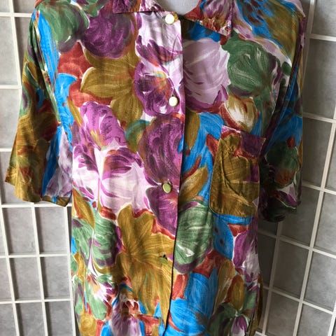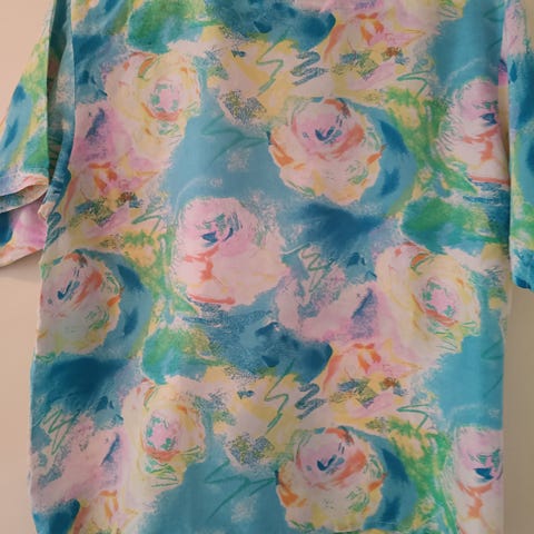 Lite brukt luftig sommerlig topp med blomster motiv. Lengde ca 70 cm. Bredde ca 1m