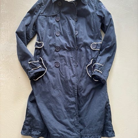 Selger en grå kåpe fra ChillNorway, størrelse L. Den er lite brukt. Det følger også med en ekstra knapp, som fortsatt henger fast i vaskelappen.