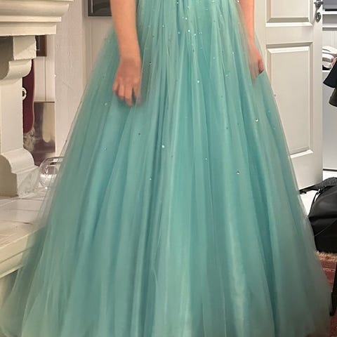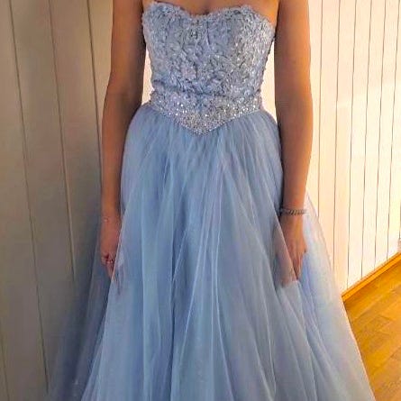 Flott ballkjole fra Agape norway. Jenta på bilde er 160cm høy og passer høyden mellom 155-170. Kjolen har snøring bak for tilpassing av bredden.