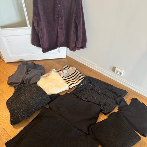Størrelse M og XS. Den i XS tror jeg ikke har blitt brukt, den i M er brukt en gang, så begge fremstår som hele og pene. Fra Lindex.