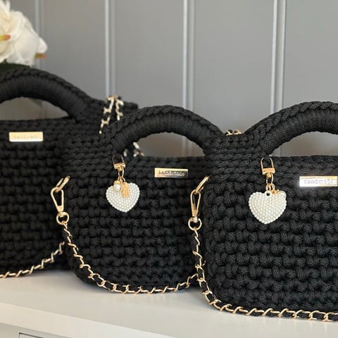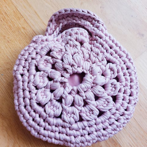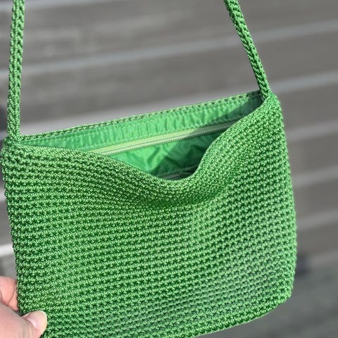 Heklet veske selges 💚 Den er ubrukt og er strikket i Ribbon garn, 100% bomull. Kan strikke i andre farger også.