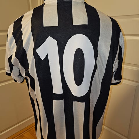 Nydelig fotballdrakt fra 97/98 sesongen da Juventus vant serie A og tapte Champions league finalen. Drakten har Del Piero trykket bakpå. Det var trykket annet navn på tidligere og er fjernet og trykket Del Piero etterpå. Drakten er i størrelse XL.