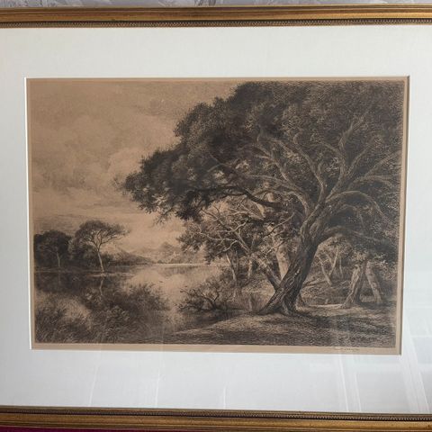 Selger et arvestykke som ikke helt passer inn i interiøret her hjemme og står nå bare og tar opp plass i boden. Bildet er opprinnelig kjøpt i Canada for en del år tilbake. Det er et lerret med ramme malt i gull. Se bildene.