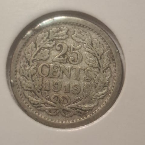25 cents Nederland 1943 sølv kv 0 -selges kr 150.-+porto