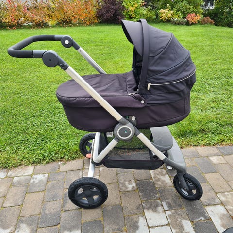 «Stokke® Scoot er den ideelle barnevognen for en urban livsstil og på reise. Vognen er brukervennlig, enkel å manøvrere og kompakt i størrelsen både i bruk og når den er slått sammen.»