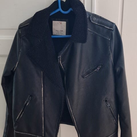 Pent og lite brukt jakke i imitert skinn i str. 10-12 år.