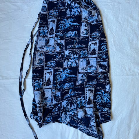 Ny med tags Hawaii tropisk Aloha slengbukser med hibiskus blomster, i rosa - oransje farger, størrelse medium. Stretch materiale. Kjøpt på Dollskill