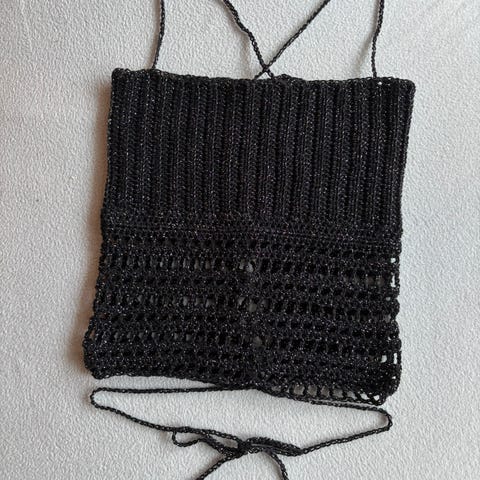 Har heklet en topp i svart 😊 Passer cup strl A-B. Toppen har knytting i nakken og bak på ryggen. Den er ikke brukt bare prøvd på til bildene i annonsen ☺️ Bare spør dersom du har noen spørsmål