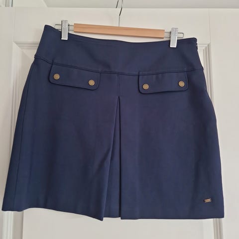 Fotsi skjørt fra Tommy Hilfiger selges fordi det ikke blir brukt. Fin beigefarge og knapper langs nedover. Sitter fint i livet. Str. 38 men passer str. 36. Ser litt skrukkete ut på bildet men er lett å stryke. Skjørtet er 100% bomull.