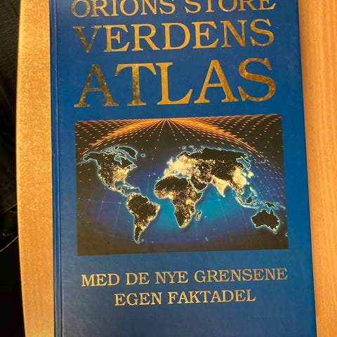 Verdensatlas med kart i stor skala over Norge og de nordiske land, all verdens flagg i farger, oppdaterte oversikter over flateinnhold, innbyggerantall, hovedsteder, språk og religion, samt informasjon om Jorden og planetene i solsystemet, romforskning m.m.