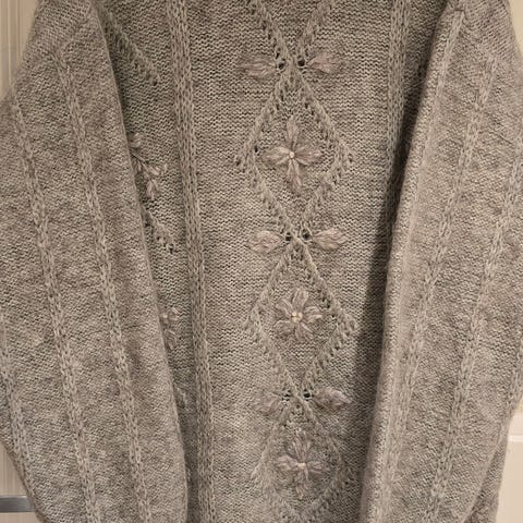 Nydelig eggeskallfarget genser i 60 % viskose og 40 % bomull. På lappen står det "BLU SWAN SWEATER", ny pris var 799,-.