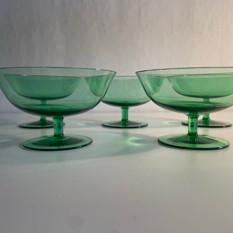 Pene dessertglass med stett i ulike farger fra Hadeland selges.