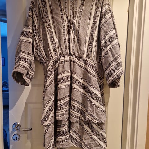 Helt ny kjole str 38. Romslig så passer opptil str L. Hvit med sort mønster. Ikke brukt