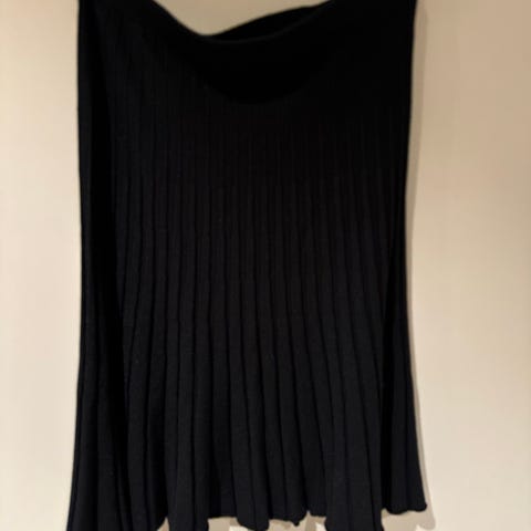 Sort strikket miniskjørt med knyting i livet. Hentes i Kristiansand eller sendes om kjøper betaler frakt.