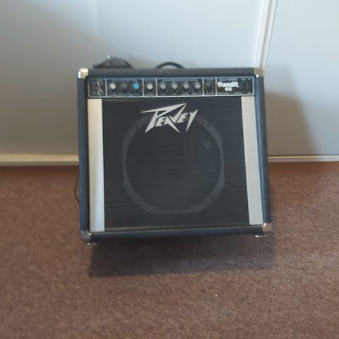 Brukt Peavey Bandit 112 med en ekstra høyttaler på hjul.