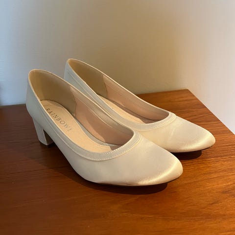 Kjempefine brudesko fra Rainbow, kjøpt på Kristins brudesalong høsten 2021 for kr 1700,- og brukt én dag. Hælhøyde 7 cm. Fantastisk gode sko, gikk i disse hele dagen uten å få vondt i føttene. Noen bruksmerker, se bilder.