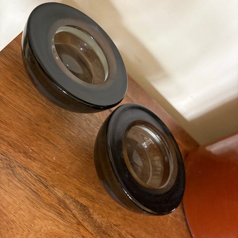 T-lysestaker i mørkt tre.