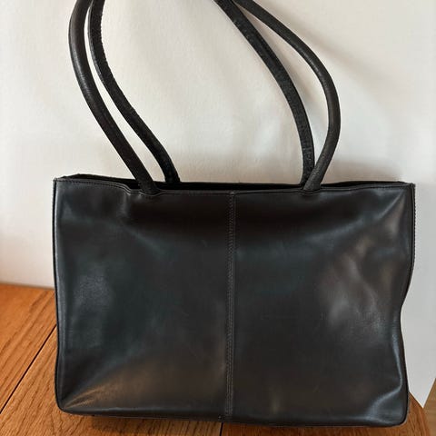 Nydelig veske i sykt god skinnkvalitet. Rommer mye. Har en skade på den ene stroppen som lett kan fikses hos skomaker eller lignende, selges derfor billig.