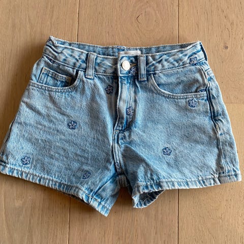 8, 9, 10 år. KINGSHP. Søt SHORTS. Jeans. Med broderte blomster. Med Frynser.